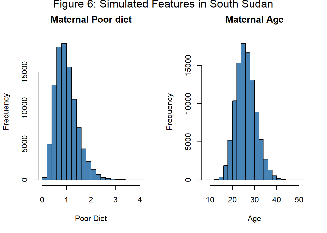 In the South Sudanese simulation, I assume that the impact of age and diet on the condition (the model coefficients) are the same as in the UK, it is just that the diet is worse in South Sudan, so the prevalence of the condition is higher; table 6 shows that this prevalence is close to 42%.