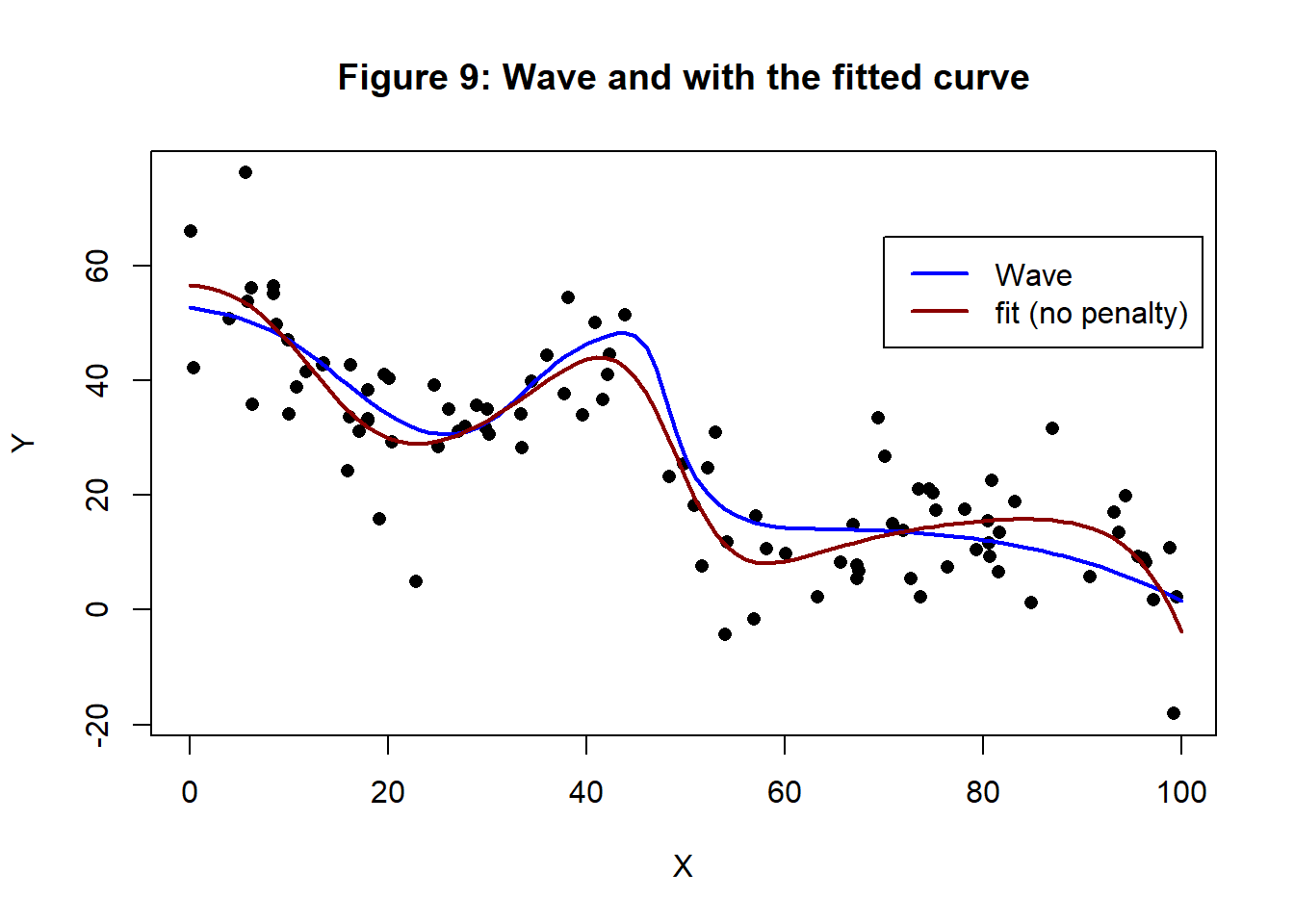 - you believe that the fitted curve will not be as wavy as the blue curve in figure 1
