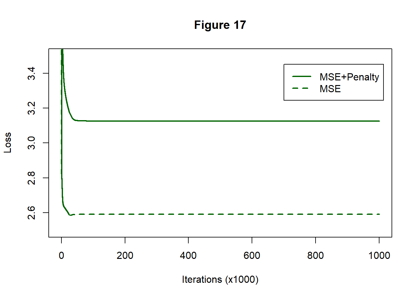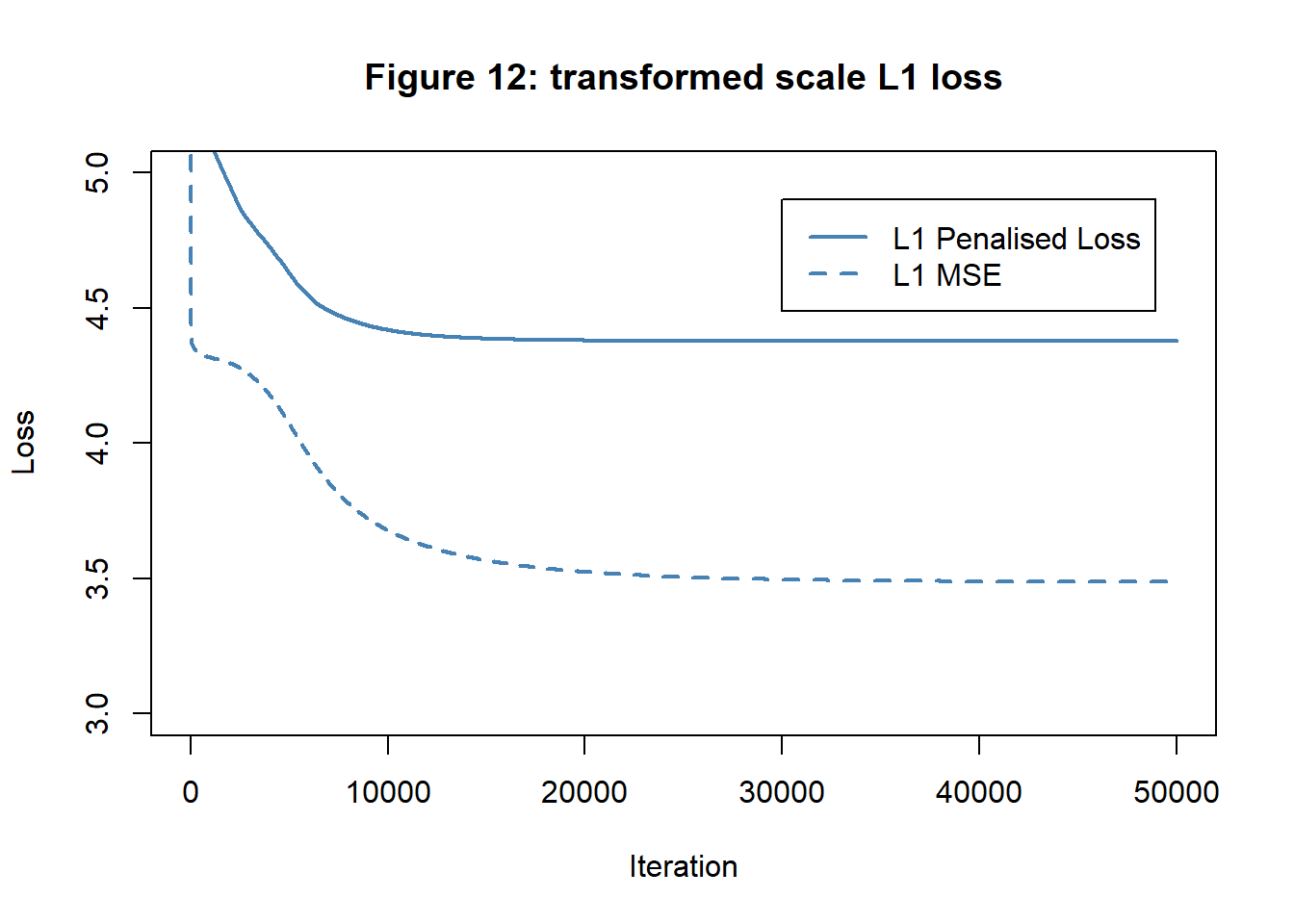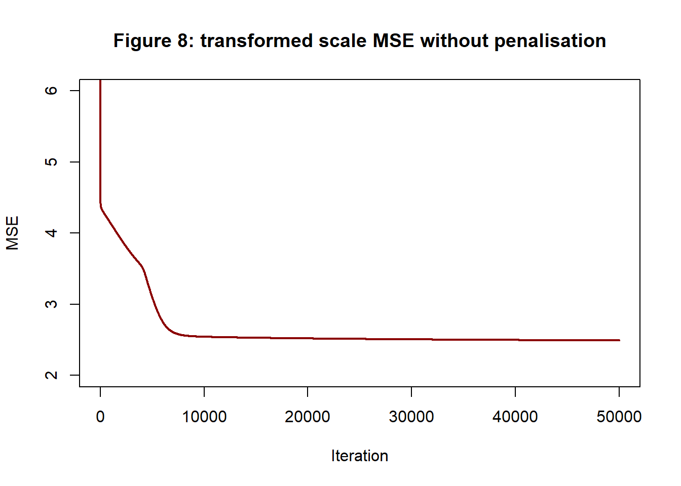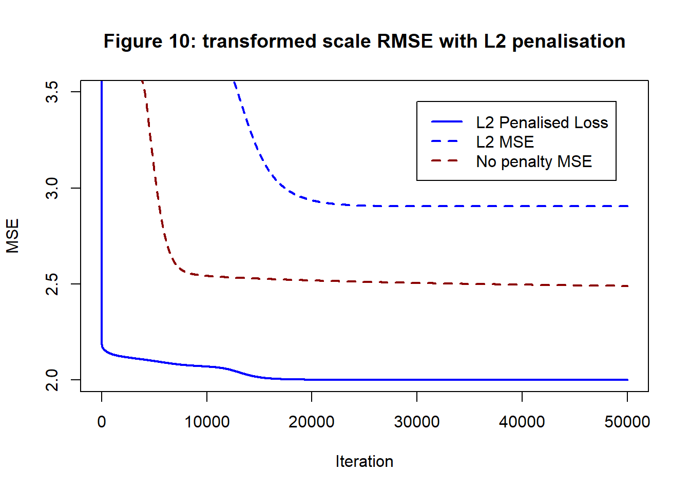 Figure 10 shows the pattern of reduction of the penalised loss (MSE+Penalty) and the MSE component of the loss. The MSE of the unpenalised analysis is shown for comparison.