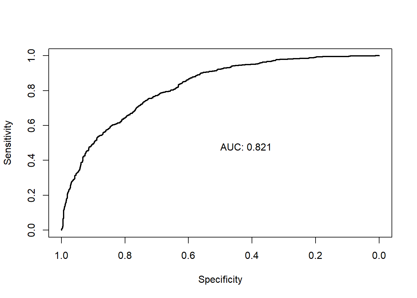Six sets of predetermined hyperparameters were investigated and the minimum smoothed validation cross-entropy loss was 0.20, this was achieved when the learning rate was 0.05, the number of rounds was 717 and the maximum tree depth was 3. The AUC for this model in the test data was 0.88.