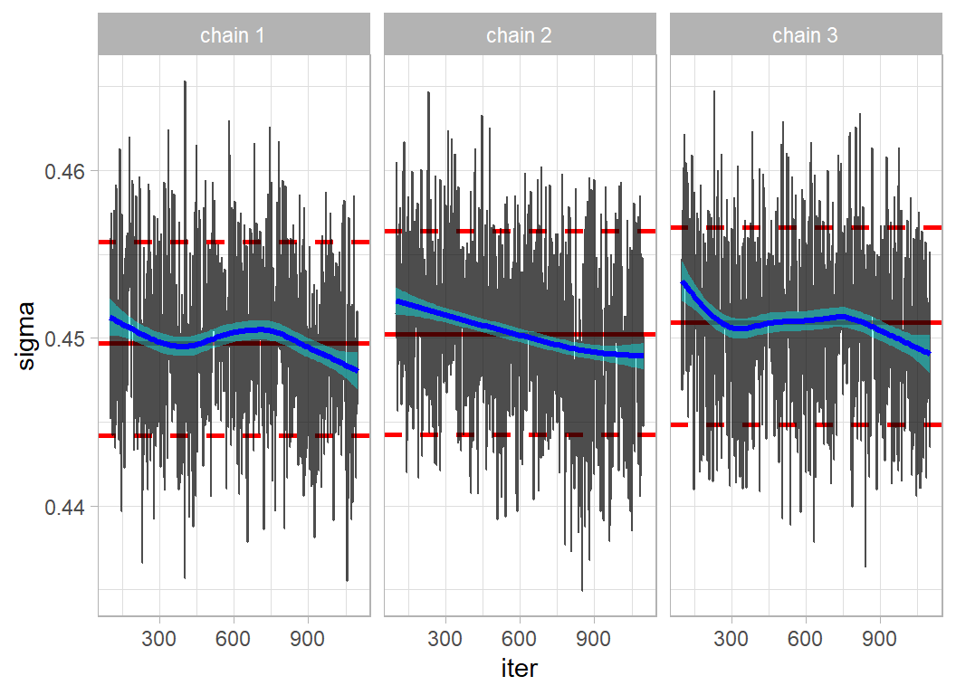 My function reportBART() summarises the results of a chain. The function’s code is given in the accompanying methods post.