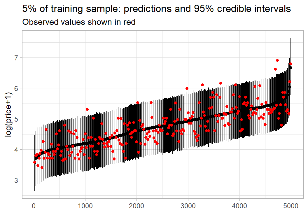 In my previous post on these data, I carried out extensive data cleaning and feature selection before creating an XGBoost model that performed very well. For my Bayesian analysis, I read the cleaned version of the data and then I use a Bayesian Additive Regression Tree (BART) model.