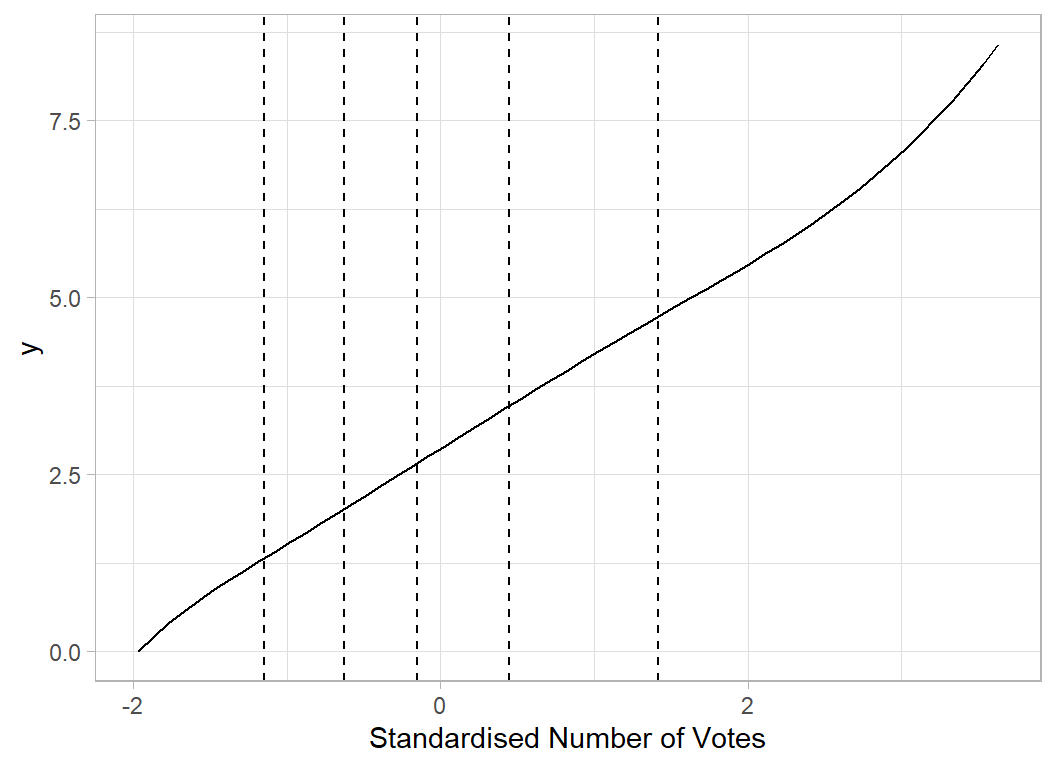voteKnots <- quantile(X[,7], probs=c(0.1, 0.3, 0.5, 0.7, 0.9))