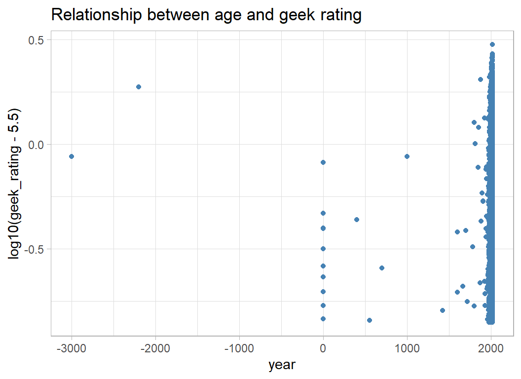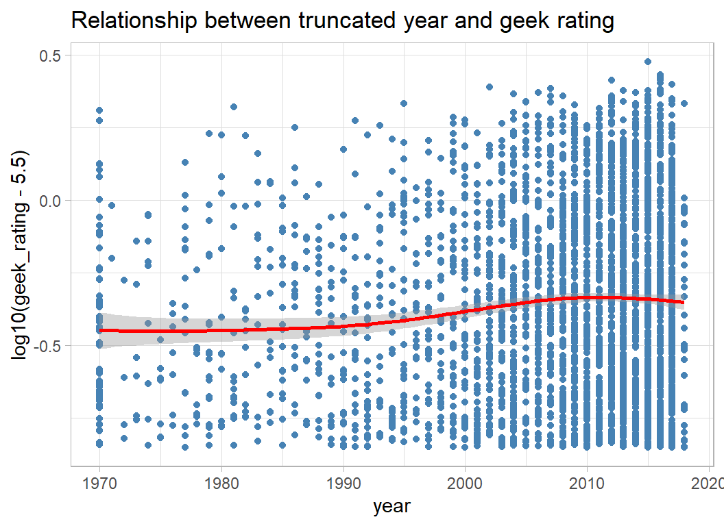 ggplot( aes(x=year, y=log10(geek_rating - 5.5)) ) +