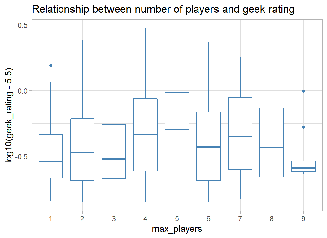 ggplot( aes(x=max_players, y=log10(geek_rating - 5.5)) ) +