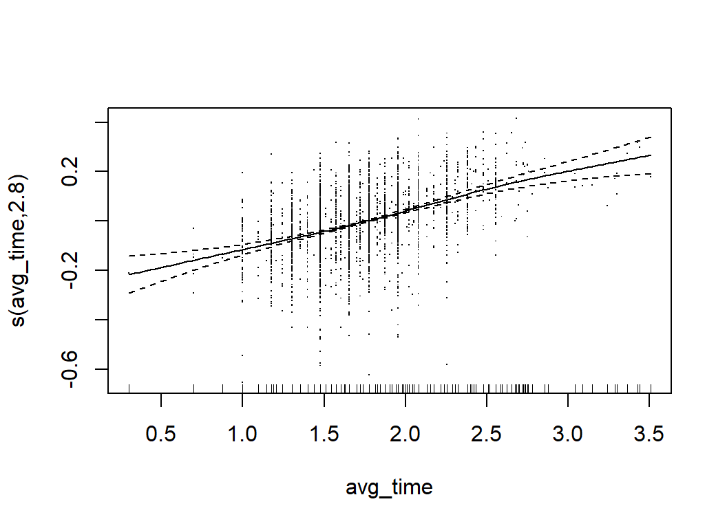 I hope that my analysis has shown that linear models are competitive with the more fashionable tree-based algorithms favoured by most competitors. My model is not top of the leaderboard, but the the difference between the GAM’s RMSE and the leader’s is slight and had the organisers used a different seed for the random number generator when they split the test data from the training data, it is possible that the order would have been reversed. In my opinion the difference between RMSEs of 0.161 and 0.169 is meaningless. I am more interested in the ease of interpretation of the GAM and its generalisability.