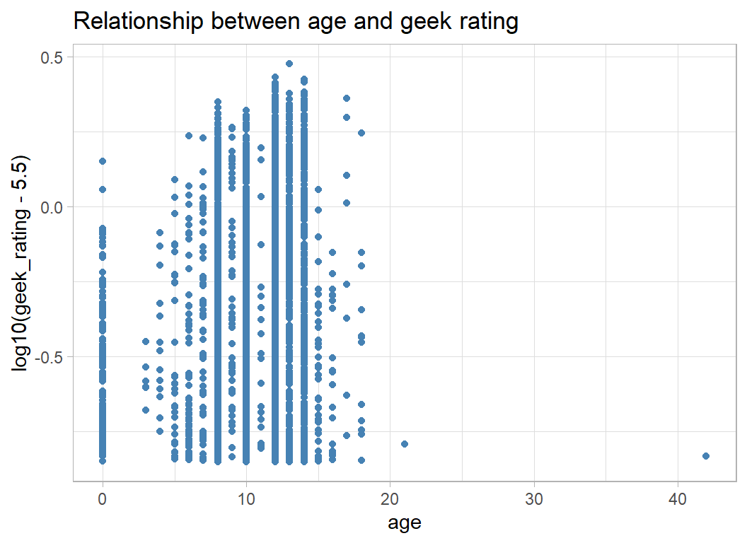 ggplot( aes(x=age, y=log10(geek_rating - 5.5)) ) +