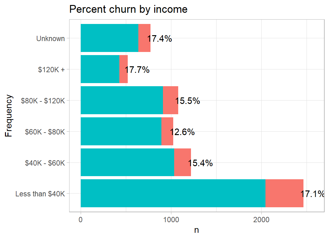 title=paste("Percent churn by",