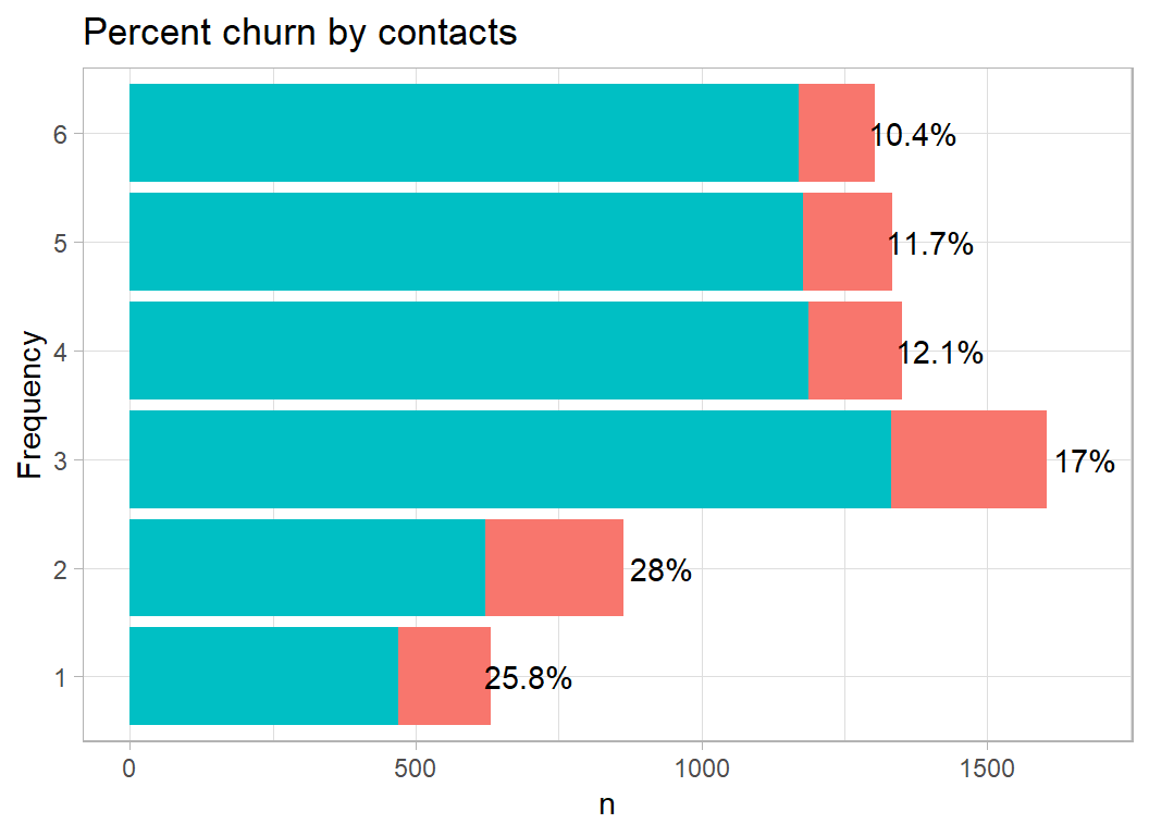 # function to plot a factor and show the percent churn