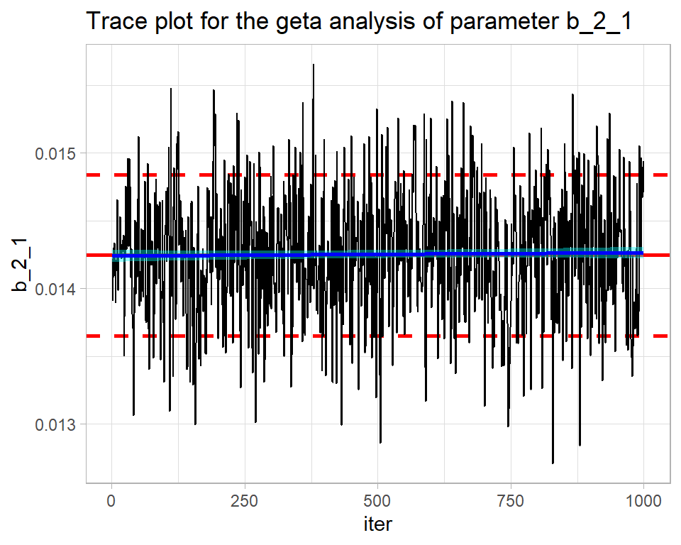 labs(title="Trace plot for the geta analysis of parameter b_2_1")
