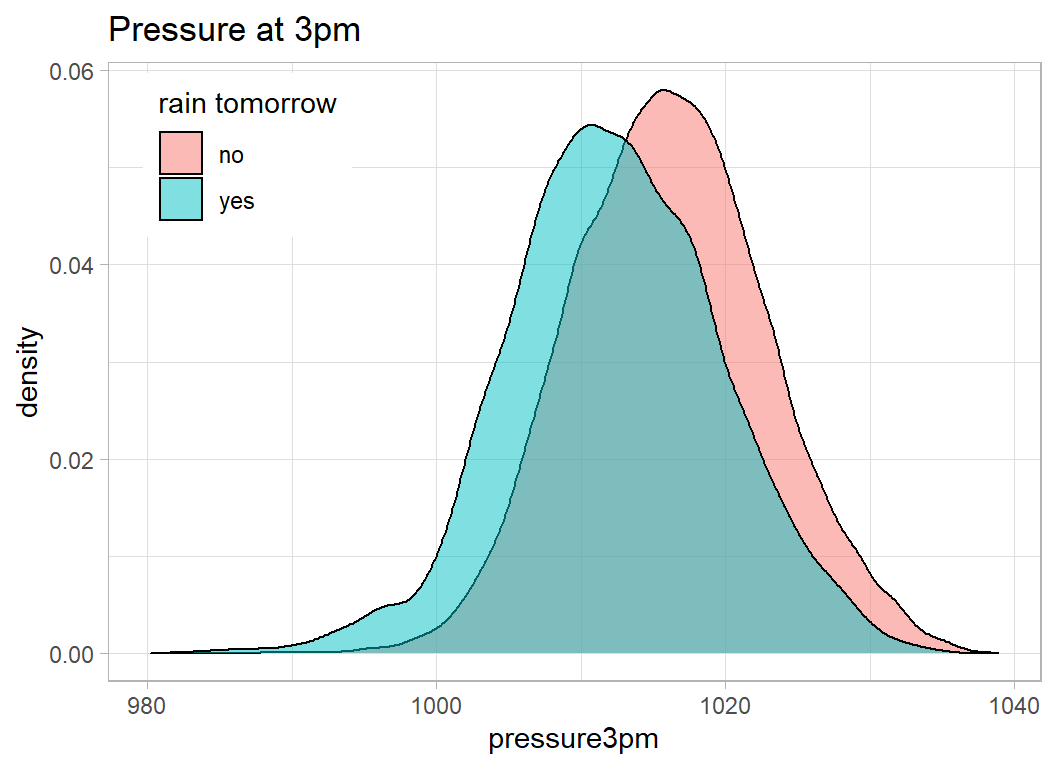 I quite like the idea of the Bayesian estimates of the proportion of days on which it rained calculated by location and month. Given more time, it would be interesting to extend the Bayesian approach and to fit a hierarchical Bayesian model to the full data set. There is an obvious structure of weather features within locations that would be perfectly suited to Bayesian estimation. The impact of, say, humidity on rain tomorrow could be viewed as an average effect for all Australia plus a random effect over locations. This would mean that each location’s regression coefficients would be shrunk towards the Australian average. A big advantage of such a model would be that it could be fitted to the data without the need for imputation.