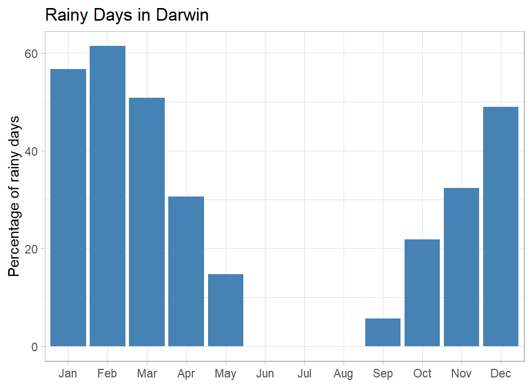 One more example to illustrate a particular problem. I’ve taken the town of Darwin in the Northern Territory. It is like an extreme version of Townsville; wet summers and no rain at all in the winter.