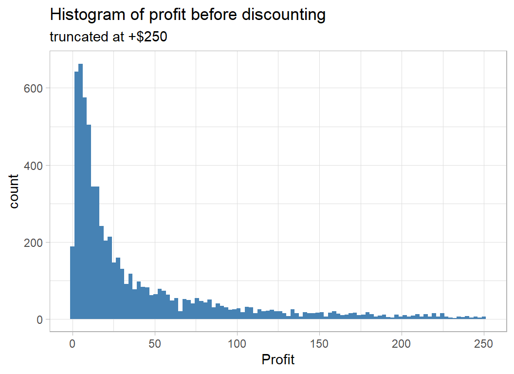 labs( title="Histogram of profit before discounting",